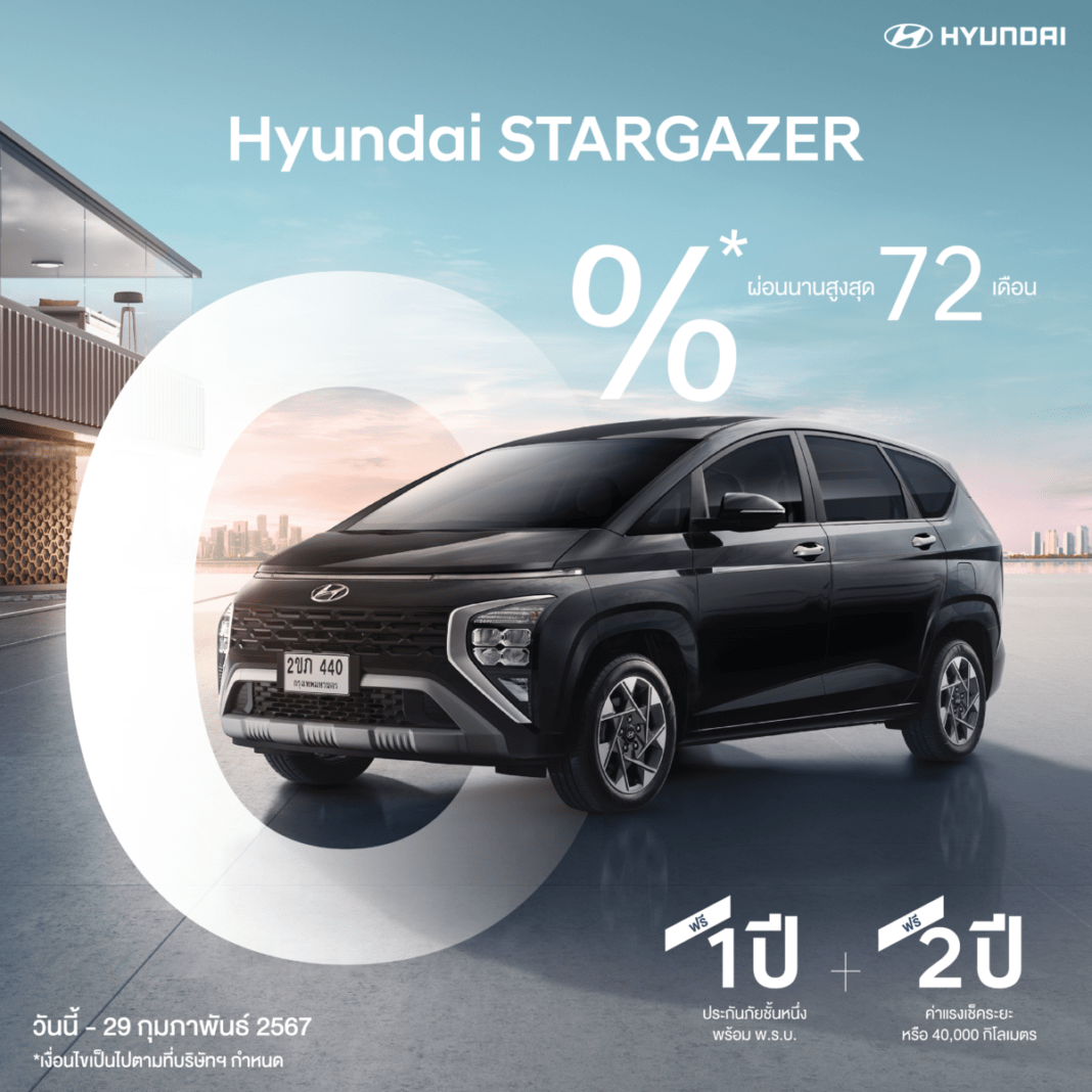 กรุงเทพฯ 12 มกราคม 2567 : ฮุนได โมบิลิตี้ (ประเทศไทย) ต้อนรับศักราชใหม่ด้วยโปรโมชั่นพิเศษ ให้คุณเป็นเจ้าของฮุนไดคันใหม่ง่ายกว่าเดิม เป็นของขวัญปีใหม่สำหรับท่านและคนที่คุณรัก สงวนสิทธิ์สำหรับผู้ที่สั่งซื้อรถยนต์ฮุนไดรุ่นที่ร่วมรายการภายในเดือนกุมภาพันธ์ 2567 เท่านั้น โดยข้อเสนอพิเศษมีทั้งดอกเบี้ยเริ่มต้น 0%, ดอกเบี้ยอัตราพิเศษ, ฟรี ประกันภัยชั้นหนึ่งพร้อม พ.ร.บ. และ ฟรี ค่าแรงเช็คระยะสูงสุด 3 ปี หรือ 60,000 กิโลเมตร(3)