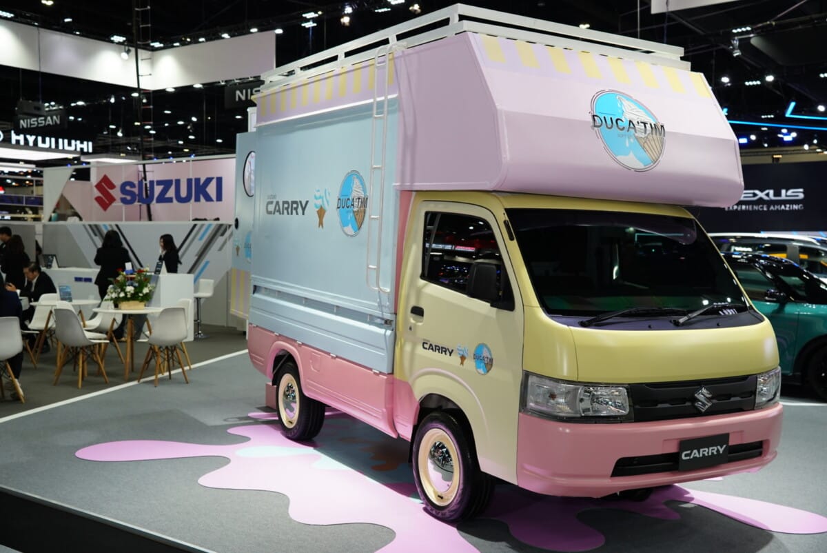 SUZUKI CARRY รถกระบะบรรทุกอเนกประสงค์ ที่ถูกออกแบบมาให้มีรูปลักษณ์ที่พร้อมจะนำไปดัดแปลงและพัฒนาต่อยอดให้เข้ากับทุกแนวทางของการดำเนินธุรกิจ จนเป็นที่ยอมรับในฐานะ Food Truck, Goods Truck และ Service Truck สามารถต่อยอดในการทำธุรกิจอื่นๆ เสมือนดั่งพาร์ทเนอร์คนสำคัญ ที่พร้อมจะสนับสนุนและร่วมขับเคลื่อนอยู่เคียงข้างผู้ใช้ด้วยความจริงใจ ราคาจำหน่ายเพียง 395,000 บาท โดยในงานนี้ ซูซูกิร่วมมือกับร้าน Duca’tim (ดูคาติม) แฟรนไชส์ไอศกรีม Soft Serve ชื่อดังคุณภาพพรีเมียม เพื่อตอกย้ำแนวคิด ‘Carry Your Dream’ สานฝันให้ธุรกิจเป็นจริงได้อย่างรวดเร็วและคุ้มค่า นำรถ SUZUKI CARRY มาดัดแปลงเป็น ‘รถไอศกรีมเคลื่อนที่ Duca’tim’ ที่ออกแบบมาอย่างลงตัวและครบวงจร รถคันนี้ไม่เพียงแต่โดดเด่นสะดุดตา แต่ยังมาพร้อมพื้นที่ใช้สอยและฟังก์ชันการใช้งานที่ครบครัน สำหรับอุปกรณ์จำหน่ายไอศกรีม ตลอดจนการจัดเก็บสินค้าได้อย่างลงตัว