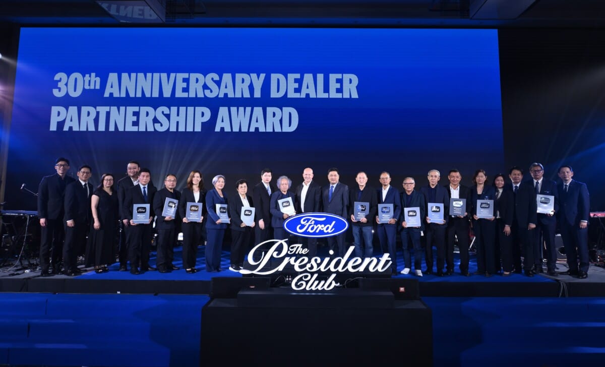 พร้อมกันนี้ ฟอร์ด ประเทศไทย ได้จัดพิธีมอบรางวัลอันทรงเกียรติ The President Club Rewards เพื่อเชิดชูเกียรติและแสดงความยินดีกับผู้จำหน่ายทั่วประเทศที่ได้รับรางวัลผลงานยอดเยี่ยม จากการดำเนินธุรกิจตามมาตรฐานของฟอร์ด สะท้อนความมุ่งมั่นในการยกระดับมาตรฐานด้านการขายและการบริการลูกค้าอย่างต่อเนื่อง นอกจากนี้ ในโอกาสพิเศษของหมุดหมายความเป็นพันธมิตร ได้มอบรางวัล “30th Anniversary Dealer Partnership” ให้แก่ผู้จำหน่ายจำนวน 13 แห่ง เพื่อยกย่องความร่วมมือระยะยาวและขอบคุณในฐานะพันธมิตรที่ร่วมสร้างการเติบโตอย่างมั่นคงมาด้วยกันตลอด 30 ปี ที่ผ่านมา