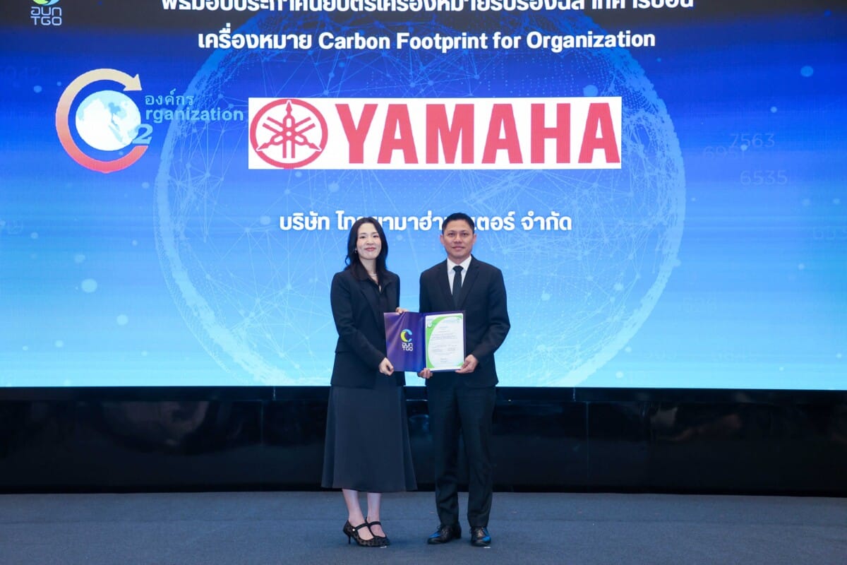 บริษัท ไทยยามาฮ่ามอเตอร์ จำกัด ได้รับประกาศนียบัตรเครื่องหมายคาร์บอนฟุตพริ้นท์ขององค์กร (Carbon Footprint for Organization – CFO) จากองค์การบริหารจัดการก๊าซเรือนกระจก (องค์การมหาชน) หรือ TGO เพื่อสะท้อนความตั้งใจในการดำเนินธุรกิจอย่างยั่งยืนและคำนึงถึงการจัดการก๊าซเรือนกระจกอย่างเป็นระบบ