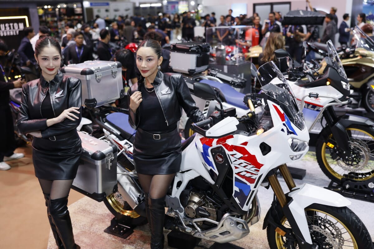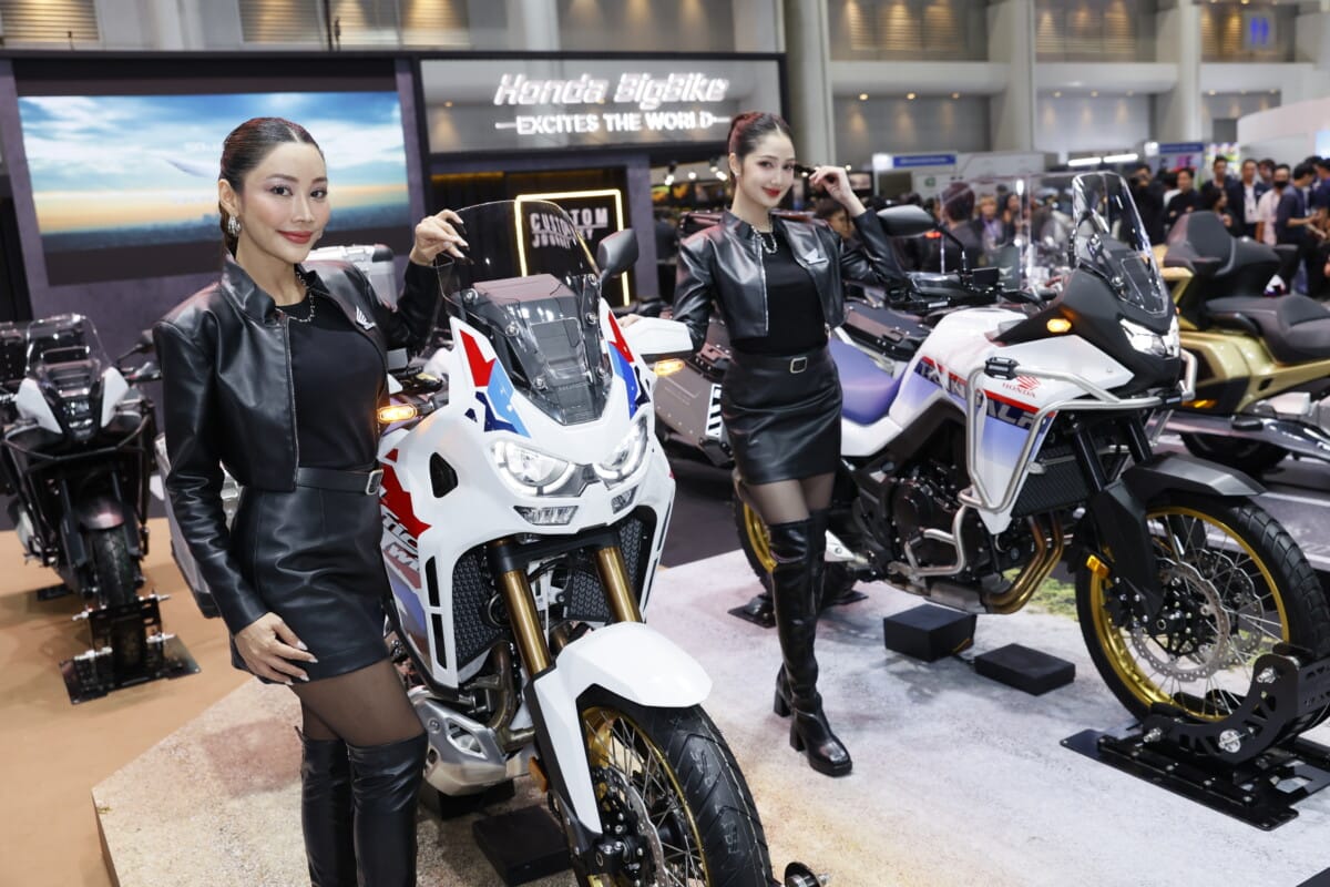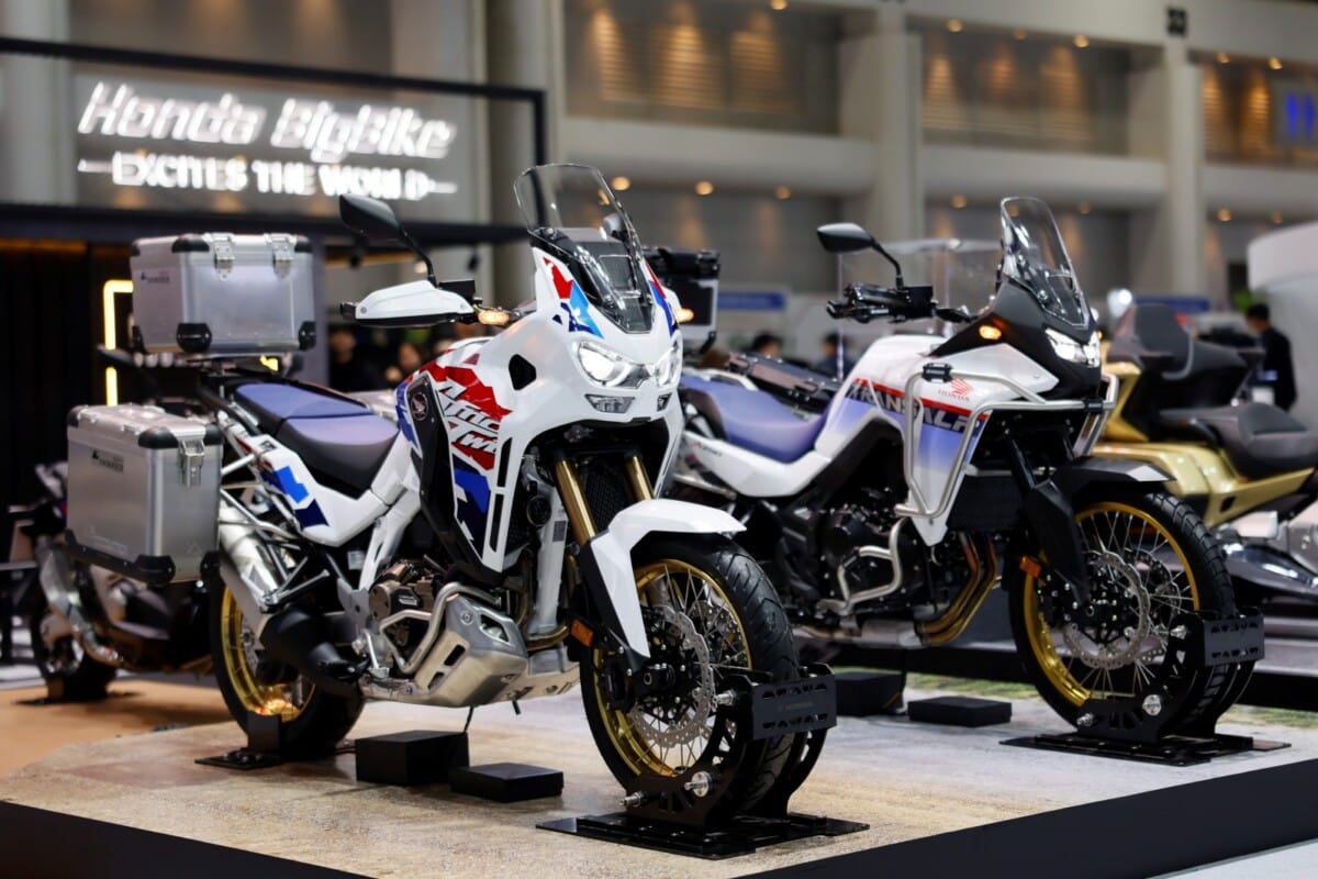 ตามมาด้วยไลน์อัปรถจักรยานยนต์สายแอดเวนเจอร์ นำโดย New Honda CRF1100L Africa Twin ภายใต้คอนเซปต์ ‘True Adventure Never End การผจญภัยที่แท้จริง ลุยได้ไม่มีวันจบ’ และ New Honda XL750 TRANSALP ภายใต้คอนเซปต์ ‘Mountains Are Calling เมื่อจุดพีกเรียกหา…ได้เวลาสัญชาตญาณลุย’ สองโมเดลที่ผสานสมรรถนะและความคล่องตัวสำหรับผู้รักการผจญภัยอย่างแท้จริง โดย New Honda CRF1100L Africa Twin DCT โดดเด่นด้วยสีใหม่ PEARL GLARE WHITE ผสานลายกราฟิกไตรคัลเลอร์ใหม่ให้ความ Aggressive Rally มากขึ้น มาพร้อมเครื่องยนต์ Parallel Twin พร้อมล้อหน้าใหม่ขนาด 19 นิ้ว และ New Honda CRF1100L Africa Twin MT สีใหม่ GRAND PRIX RED มาพร้อมยางแบบ Tubeless ใหม่ อวดความเป็นเอ็นดูโร่ตัวจริง ขณะที่ New Honda XL750 TRANSALP มาพร้อม New LED Headlight ดีไซน์ไฟหน้า LED ใหม่ที่รวมไฟสูงและไฟต่ำในชุดเดียว ช่วงล่างเซ็ตอัปใหม่ รับแรงกระแทกได้ดีขึ้น เครื่องยนต์ Parallel Twin 755 ซีซี 8 วาล์ว น้ำหนักรวมเพียง 210 กก. พร้อมล้อหน้า 21 นิ้ว ล้อหลัง 18 นิ้ว และระบบ ABS ที่เปิด–ปิดได้