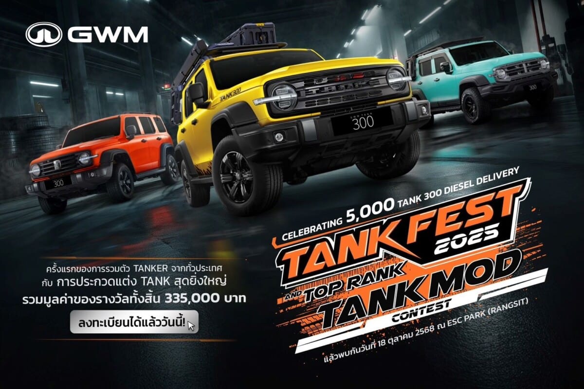 GWM เตรียมฉลองส่งมอบ NEW GWM TANK 300 DIESEL ครบ 5,000 คัน เปิดเวทีการแข่งขันรถแต่ง ‘TOP RANK TANK MOD 2025’ สุดยิ่งใหญ่ในไทย