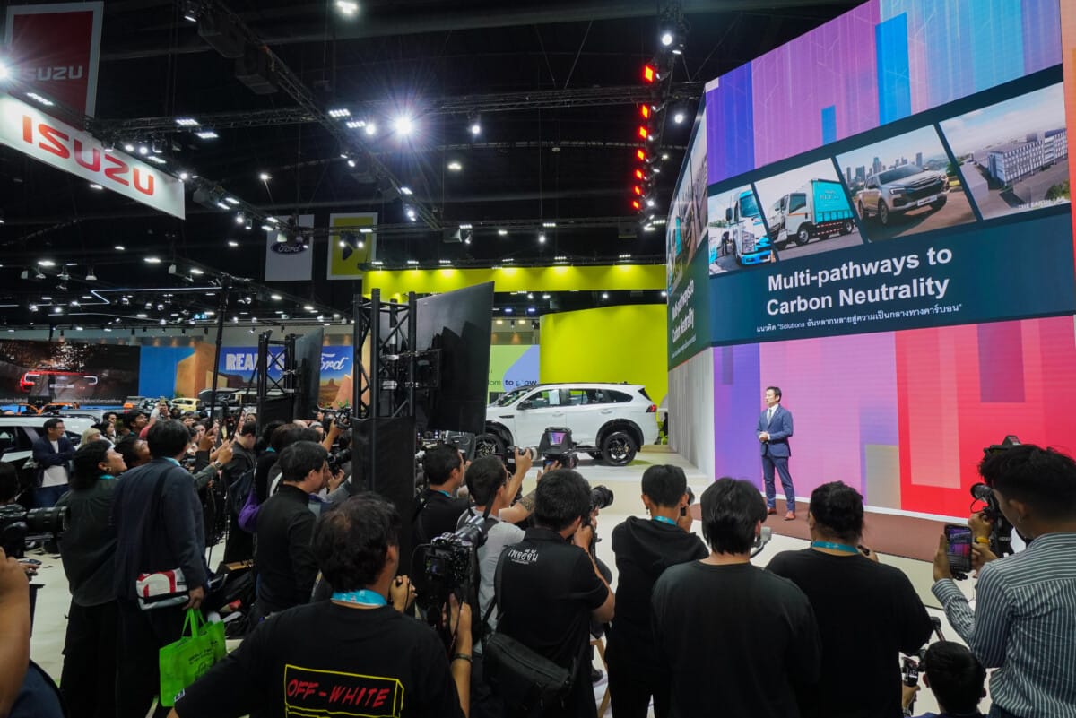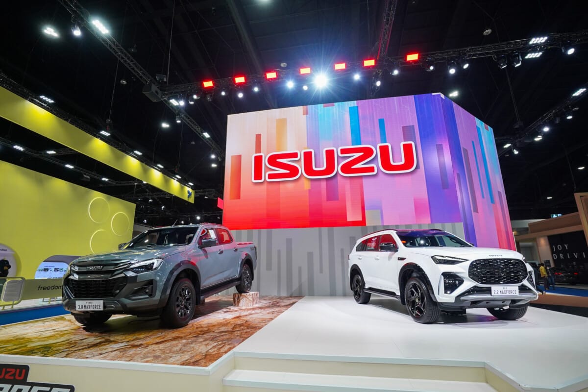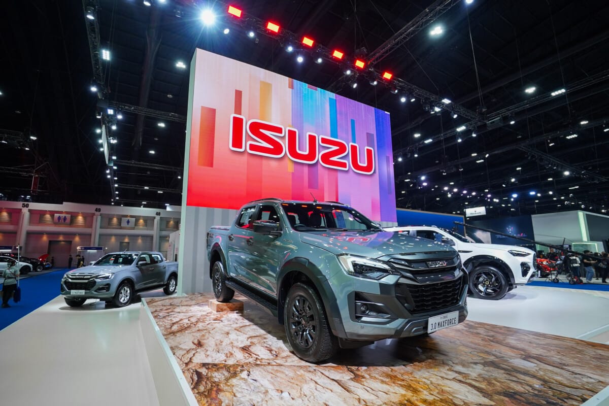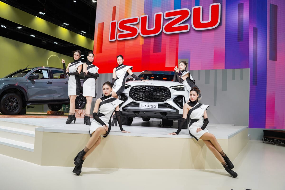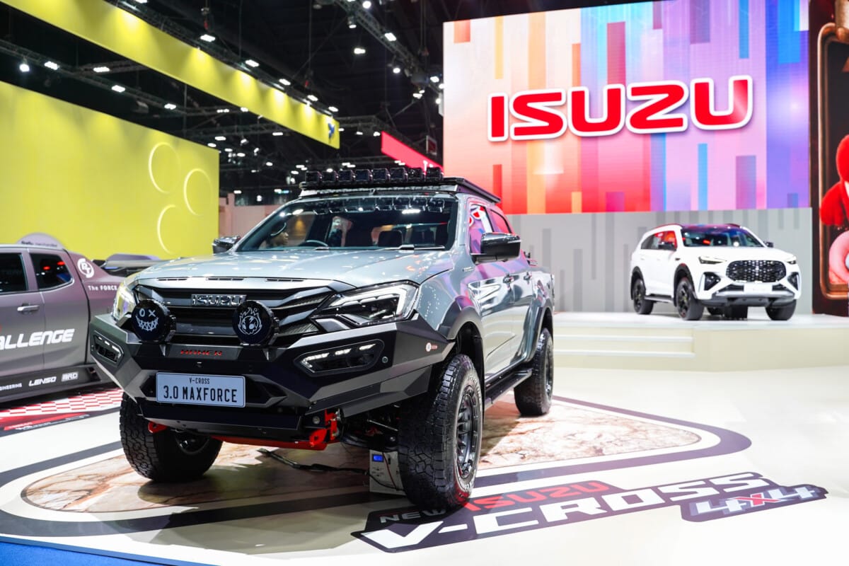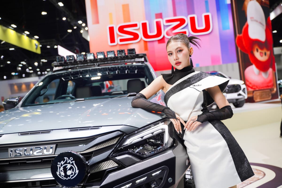 โดยอีซูซุได้นำรถมาจัดแสดงรวมทั้งสิ้น 15 คัน ทั้งรุ่นมาตรฐานยอดนิยมครบทุกไลน์อัพ จำนวน 10 คัน นำโดยรถปิกอัพอีซูซุ ดีแมคซ์ และรถยนต์นั่งอเนกประสงค์มิว-เอ็กซ์ รวมถึงอีกหนึ่งทางเลือกให้กับลูกค้าชาวไทยอย่างรถปิกอัพไฟฟ้า “อีซูซุ ดีแมคซ์ EV” ที่ได้นำมาจำหน่ายครั้งแรกภายในงาน และเพิ่มความสปอร์ตเร้าใจกับรถตกแต่งพิเศษหลากสไตล์จำนวน 5 คัน ที่ออกแบบมาเพื่อสร้างแรงบันดาลใจและสะกดทุกสายตา นำทัพโดย New! ISUZU V-CROSS 4×4 “THE ONE & ONLY” และ MU-X “THE NEXT PEAK” 4WD ครั้งแรกกับเครื่องยนต์ 2.2 Ddi MAXFORCE ในระบบขับเคลื่อนสี่ล้อ ที่เปิดตัวเมื่อปลายเดือนกุมภาพันธ์มาโชว์ภายในงาน พร้อมด้วยไฮไลต์สำคัญอย่าง รถปิกอัพอีซูซุ ดีแมคซ์ รถแข่งต้นแบบที่จะใช้ในรายการ “ISUZU CHALLENGE THAILAND 2026” และ ISUZU V-CROSS 4×4 เครื่องยนต์ 2.2 Ddi MAXFORCE ที่อีซูซุได้ร่วมมือกับ WILD ผู้ผลิตชิ้นส่วนชื่อดังของไทยในการออกแบบอุปกรณ์ตกแต่งพิเศษรอบคันโดยเฉพาะ และรถยนต์นั่งอเนกประสงค์ MU-X “THE NEXT PEAK” 2.2 Ddi MAXFORCE รุ่น RS สี Dolomite White Pearl มาตกแต่งเพิ่มความดุดันขั้นสุดในสไตล์ Top Secret SPL ครั้งแรกของโลกกับการเผยโฉมโปรเจกต์ “TOP Secret The First PPV” และ รถยนต์นั่งอเนกประสงค์ MU-X “THE NEXT PEAK” 2.2 Ddi MAXFORCE รุ่น Active สี Dolomite White Pearl ที่ร่วมมือกับ Bangkok Hot Rod Custom Show ผู้จัดงานประกวด Custom Car ที่ใหญ่ที่สุดในประเทศไทย มาพลิกโฉมสะกดทุกสายตาด้วยชุดแต่งพิเศษคอนเซปต์ “Premium Tough”